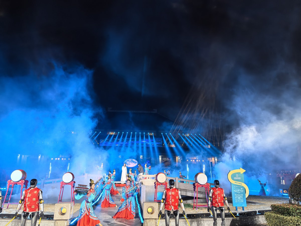 燈會創(chuàng)新打造“文物燈廊”,古詩詞燈謎與文物燈籠相映成趣,游客賞燈猜謎,盡享元宵雅趣。歷史人物NPC互動妙趣橫生,楚莊王、越王勾踐、喜大人、曾侯乙、屈原、王昭君等“穿越”而來,這場跨越千年的“名人對話”,讓歷史人物從文物與典籍中走出,與今人共度元宵,送上真摯的馬年祝福。情景歌舞《一眼千年》以光影舞美演繹楚韻風華,編鐘、虎座鳥架鼓等元素翩然流轉,讓觀眾沉浸式徜徉于千年文明,在一眼一瞬間讀懂荊楚文脈的綿延不息。