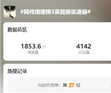 3月12日,有消息稱(chēng)《瑯琊榜3》陣容有變動(dòng),吳磊將會(huì)被換成張凌赫,此事引發(fā)網(wǎng)友熱議,詞條“網(wǎng)傳瑯琊榜3吳磊換張凌赫”登上微博熱搜榜。