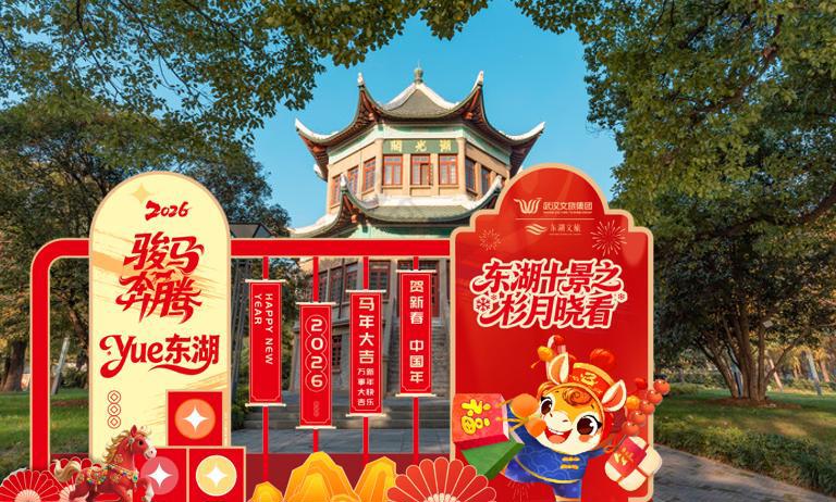 賞東湖十景,定格新春美好。游客可在“東湖十景”(磨山攬勝、梅園踏雪、杉月曉看、凌波追光、行吟擇畔、湖光序曲、落霞水榭、聽濤觀瀾、落霞?xì)w雁、蘆洲古渡)中尋找六處新春打卡裝置,集滿五處打卡照片即可兌換馬年定制禮品。活動將引導(dǎo)市民游客在移步換景中,深度感受東湖的自然之美與人文底蘊(yùn)。
