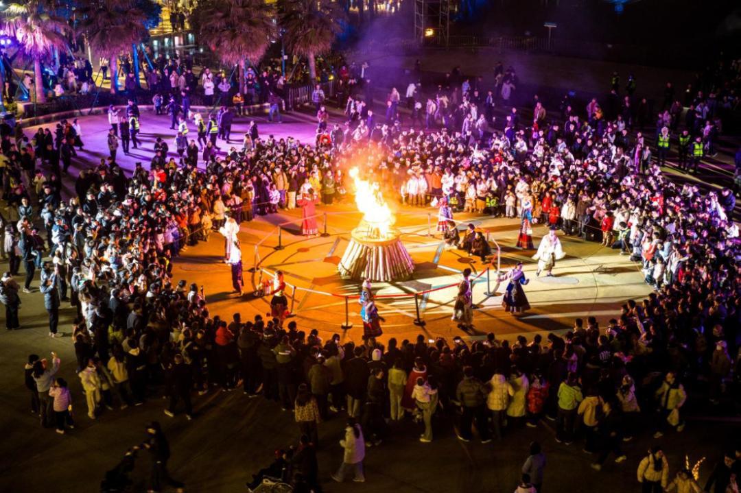 襄陽華僑城奇幻度假區(qū)推出“新春奇廟夜”非遺演藝,45萬方自貢非遺燈會璀璨綻放,30余組彩燈點(diǎn)亮夜空。以“銀票玩法”為核心的攤位游戲人氣火爆,“新年摸高”“一蹴而就”“砸釘子”等十余種游戲前排起長隊(duì),家長帶著孩子一同挑戰(zhàn),成功后的歡呼聲與笑聲不絕于耳。川劇變臉、高蹺、噴火、舞獅等非遺民俗表演流動上演,非遺魚燈隊(duì)伍時(shí)而如靈動魚群穿梭、時(shí)而駐足與游客互動,滿載著“年年有余”的吉祥寓意。
